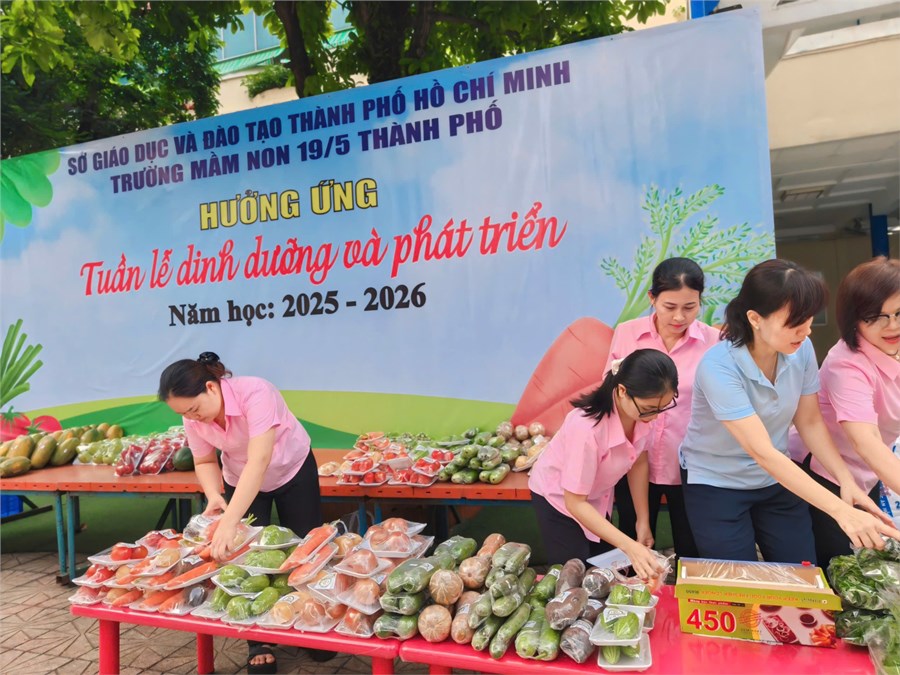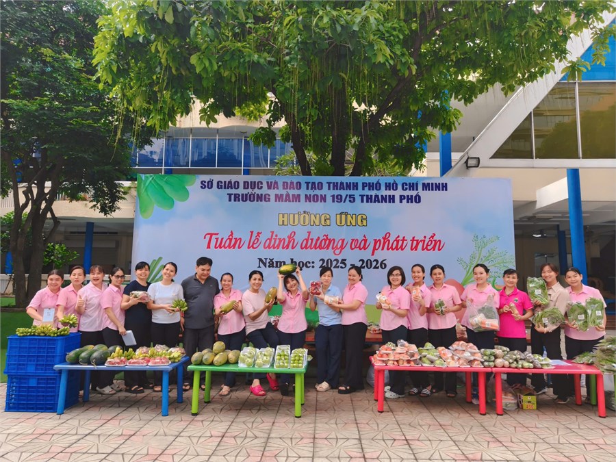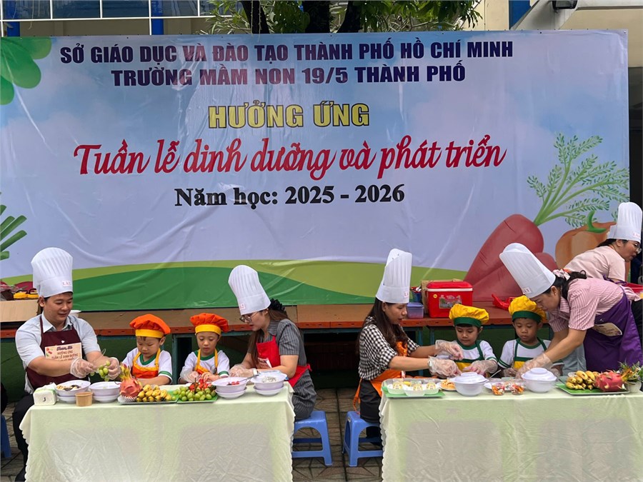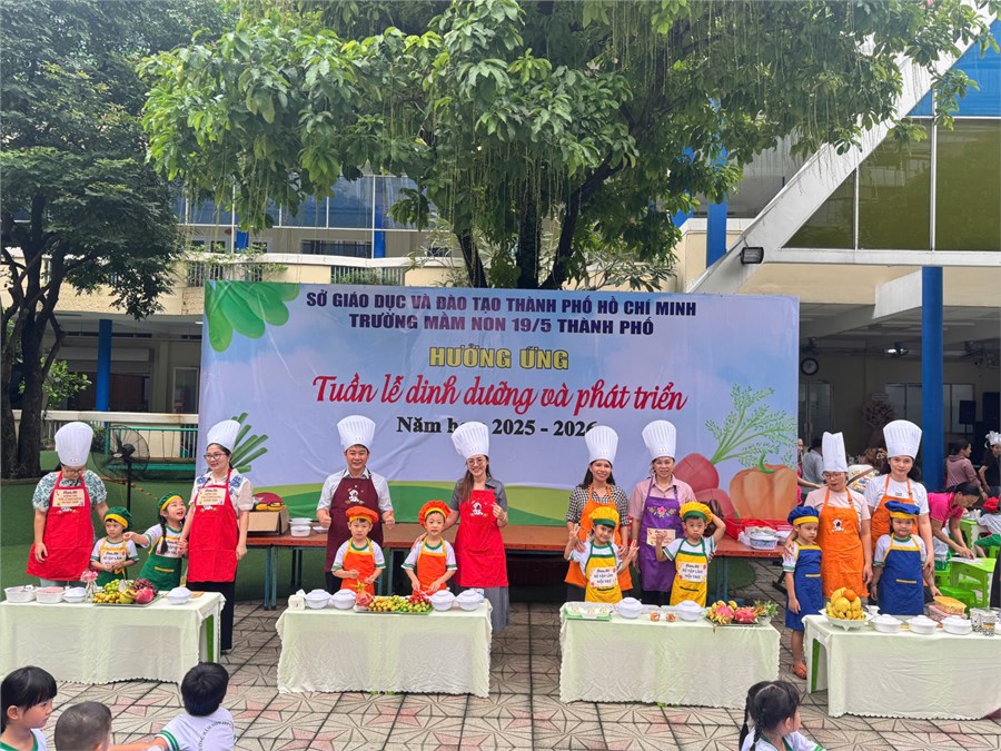 Nhằm nâng cao nhận thức và hình thành thói quen ăn uống khoa học cho trẻ, Trường Mầm non 19/5 Thành Phố tổ chức chuỗi hoạt động hưởng ứng Tuần lễ Dinh dưỡng và Phát triển năm 2025 (từ ngày 16 đến ngày 22/10/2025) với nhiều hình thức phong phú, ý nghĩa. Các bé được tham gia các hoạt động chủ điểm trong tuần lễ ý nghĩa ngày như: