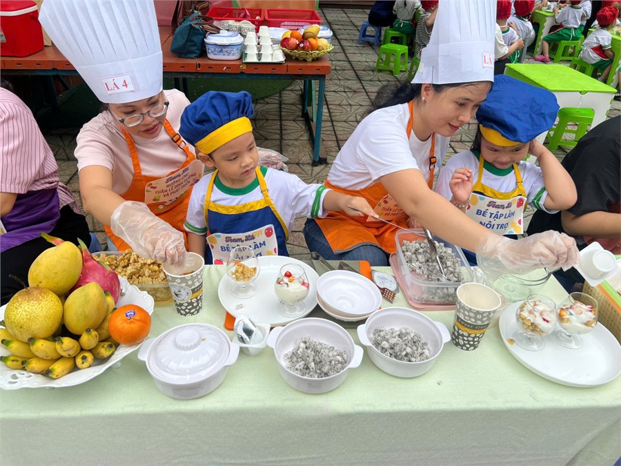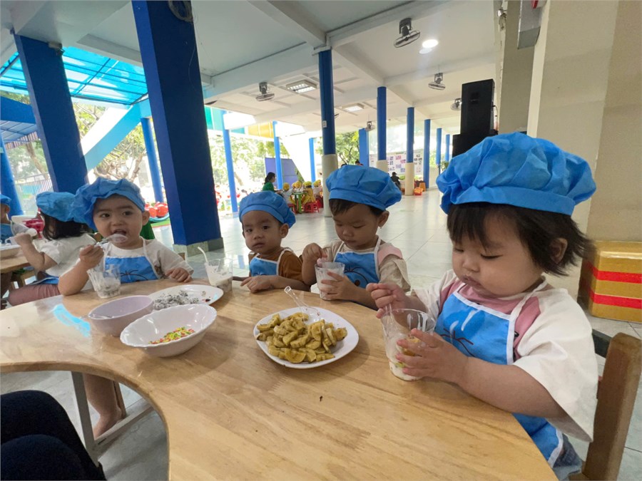 + Hoạt động buffet sáng và Bé tập làm nội trợ “yaourt trái cây”;