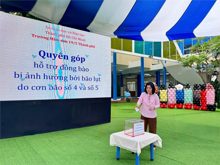- Từ 7 giờ sáng, nhằm chia sẻ yêu thương nhà trường đã phát động hoạt động quyên góp đầy ý nghĩa trong ngày quan trọng này. Toàn thể cán bộ quản lý, giáo viên, nhân viên, cha mẹ học sinh và các bé đã tham gia nhiệt tình với mong muốn phần nào chia sẻ, hỗ trợ đồng bào, trẻ em ở những vùng bị ảnh hưởng do bão lũ số 4 và số 5.